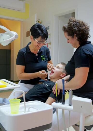 Ein sehr wichtiger Bestandteil unserer Praxis ist die Behandlung von Kindern. Mit dem Durchbruch der ersten Milchzähne sollten regelmäßige zahnärztliche Kontrollen durchgeführt werden. Zusätzlich ist das regelmäßige häusliche Zähneputzen und eine gesunde Ernährung wichtig. Bei Bedarf bieten wir Ihnen mit Ihren Kindern eine Ernährungsberatung bei unserer Prophylaxeassistentin Sarah Schreiber an. Unsere Praxis ist auf die Behandlung von Kindern jeder Altersgruppe vorbereitet. Bei schweren Fällen arbeiten wir mit einer Kinderzahnarztpraxis in Dresden zusammen.